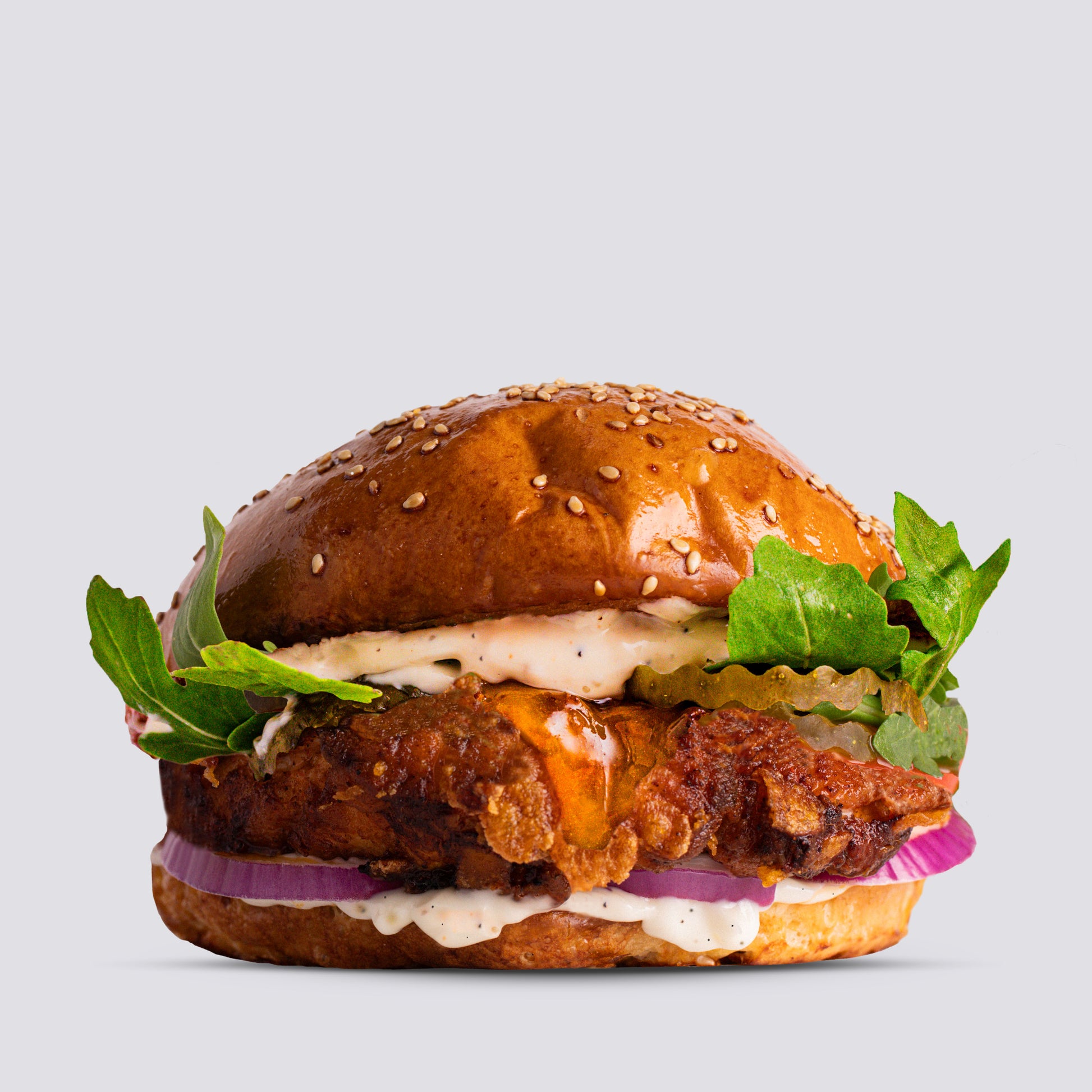 irischer Cheddar, Rucola, Gewürzgurken, rote Zwiebeln