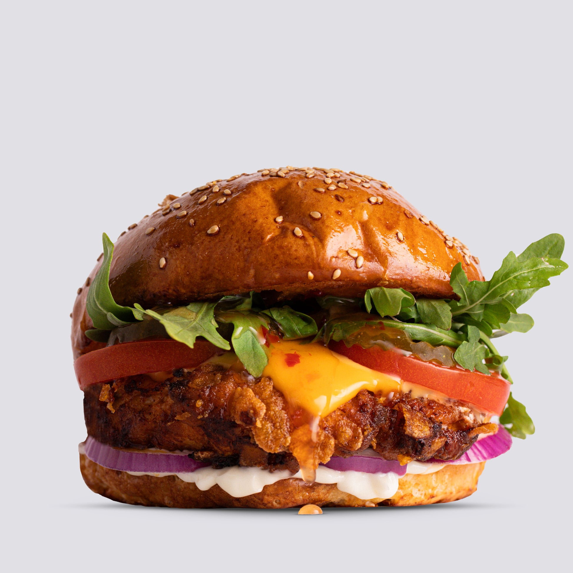 BUTTERMILCH-HÄHNCHEN MIT KNUSPRIGER CORNFLAKESPANADE & SWEET CHILI SOßE IM BÄCKER BUN