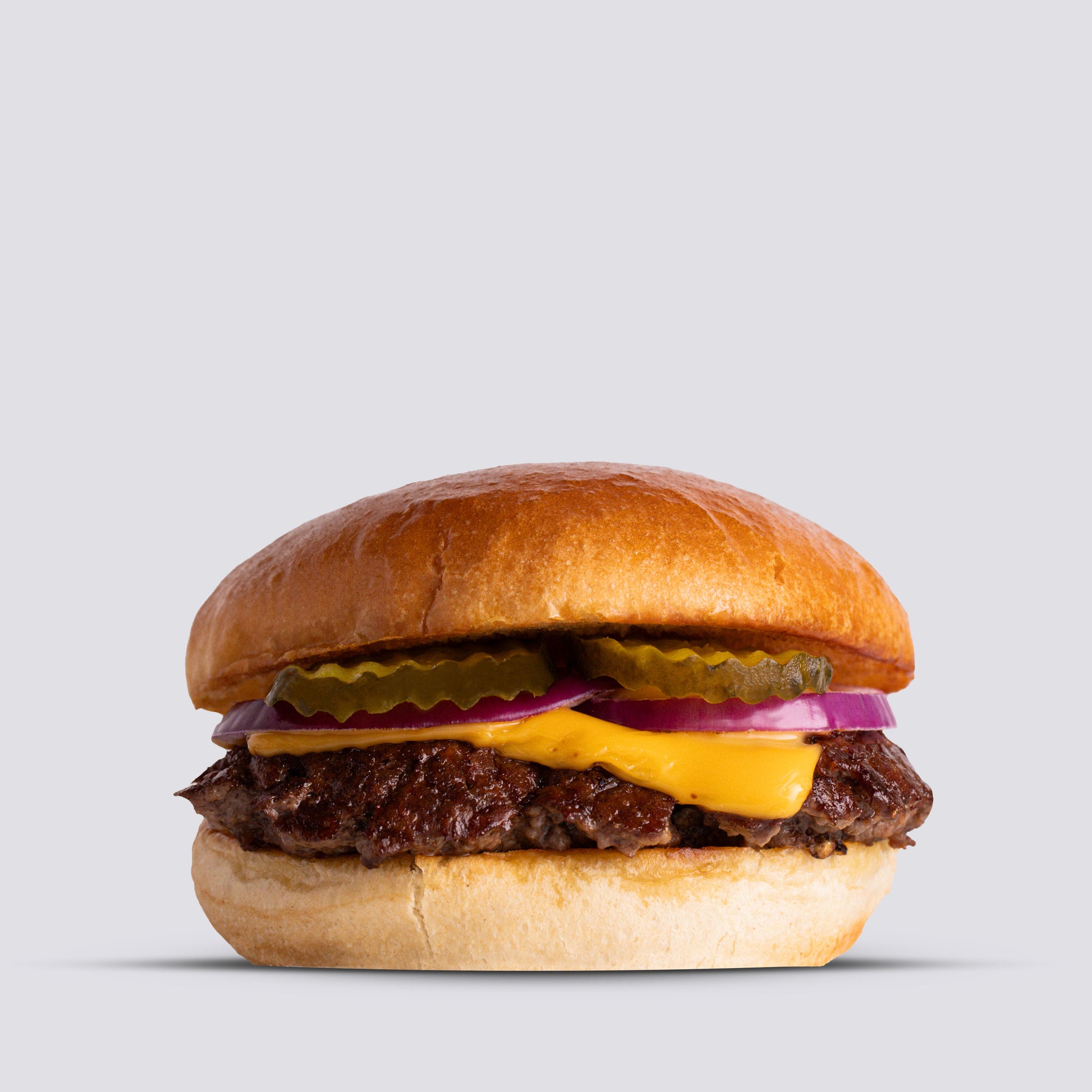 Rindfleisch Patty, American Cheese, Gewürzgurken, rote Zwiebeln